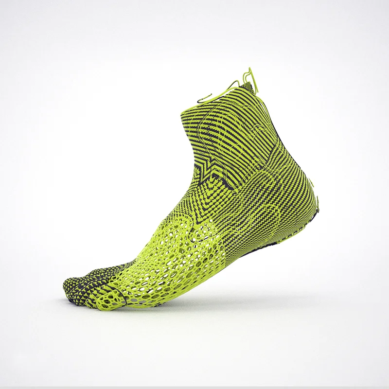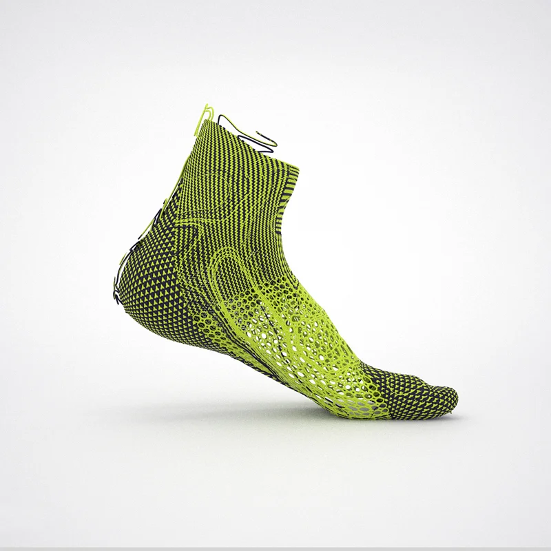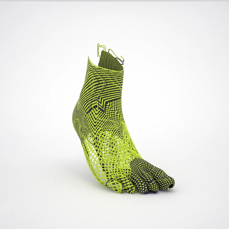For the release of the Nike Flyknit shoe collection, we designed a generative knitting structure that is adaptable to most surfaces and volumes. The system was used to prototype several concept shapes, which were used as key visuals in form of 2D printed graphics and 3D printed objects during the release of the shoe collection. The goal was to create shapes that convey precission, fit and lightness,Nike has engineered knit for performance to create running footwear that features only the essentials. Employing a new technology called Nike Flyknit, yarns and fabric variations are precisely engineered only where they are needed for a featherweight, formfitting and virtually seamless upper.